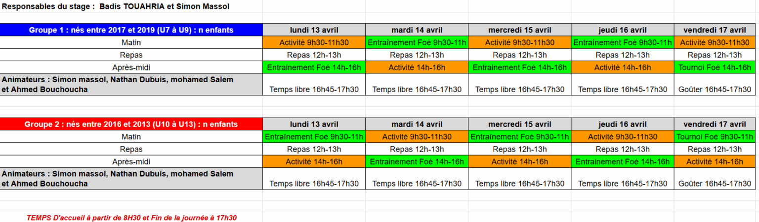 Dès que le planning définitif sera validé, il sera communiqué à l’ensemble des familles.
